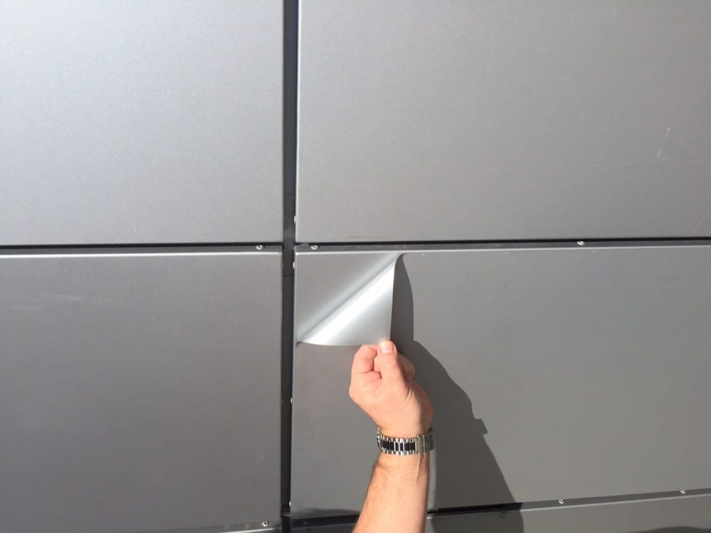 Metal Shield is thick enough to protect the substrate from normal damage if it was to be vandalized again and or cover up existing damage while making the surface look new and factory finished. Metal Shield utilizes a proprietary adhesive strictly designed to bond strong enough as to not be removed by the general public but easily removed by a trained technician without leaving any residue on the metal surface.